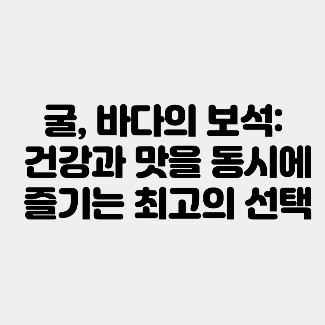 굴은 그 다양한 영양소와 건강상의 이점으로 매일의 식단에 훌륭한 추가가 됩니다. 굴과 함께라면, 매일의 식사가 더욱 건강하고 맛있어집니다. 지금 바로 굴을 활용한 요리에 도전하여, 그 다양한 맛과 건강상의 이점을 모두 즐겨보세요!