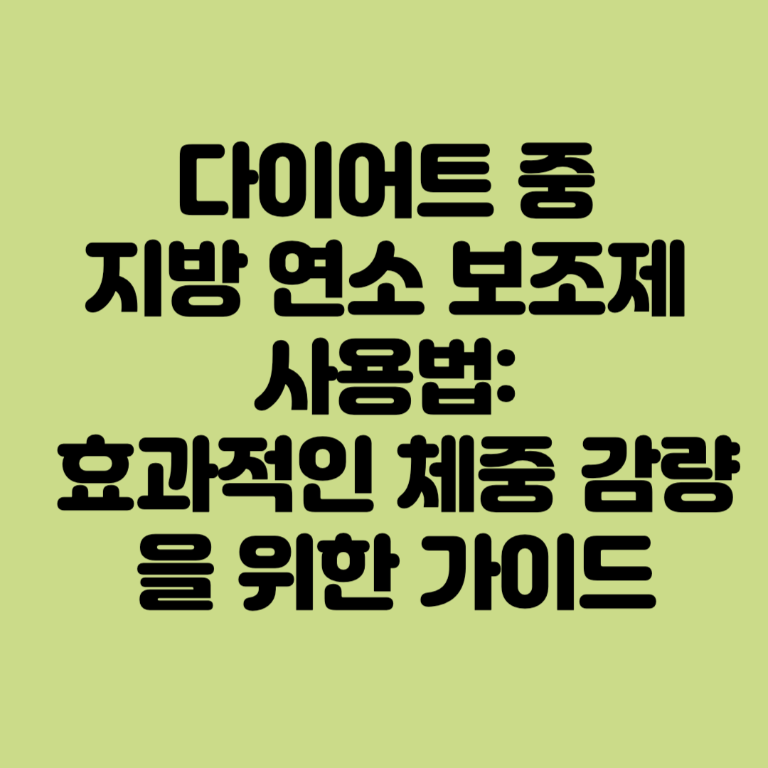 다이어트를 하면서 지방을 효과적으로 연소시키는 것은 체중 감량의 중요한 목표 중 하나입니다. 지방 연소 보조제는 이러한 과정을 지원하여 체중 감량을 더 쉽게 달성할 수 있도록 도와줍니다. 이번 글에서는 다이어트 중 지방 연소 보조제 사용법에 대해 알아보고, 건강한 체중 감량을 위한 효과적인 전략을 소개하겠습니다.