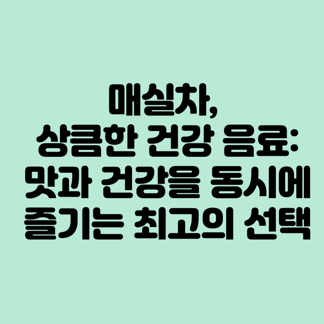 매실차는 그 다양한 영양소와 건강상의 이점으로 매일의 생활에 훌륭한 추가가 됩니다. 매실차와 함께라면, 매일의 일상이 더욱 건강하고 상쾌해집니다. 지금 바로 매실차를 활용한 다양한 음용법을 시도하여, 그 다양한 맛과 건강상의 이점을 모두 즐겨보세요!