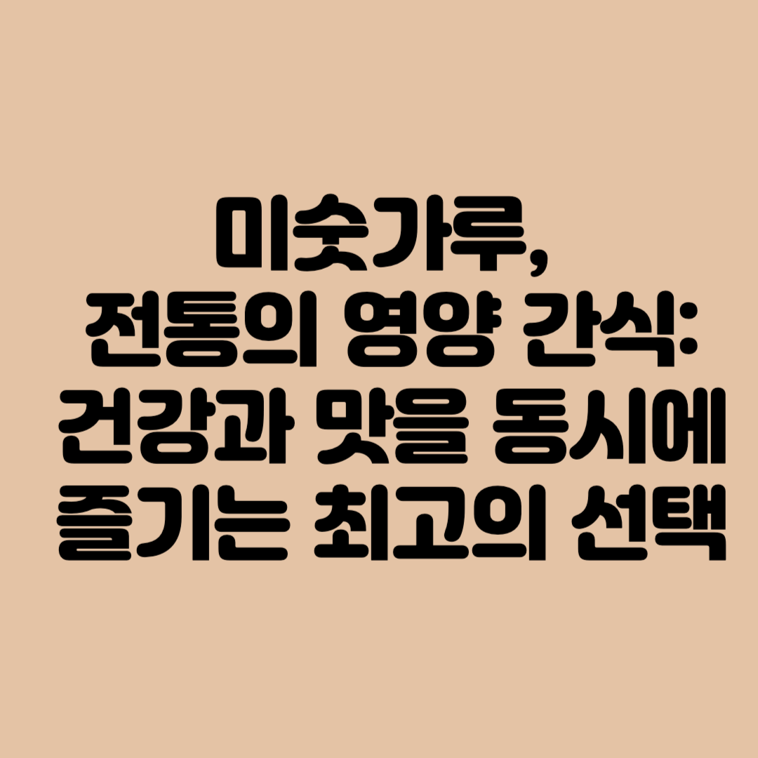 미숫가루는 그 다양한 영양소와 건강상의 이점으로 매일의 식단에 훌륭한 추가가 됩니다. 미숫가루와 함께라면, 매일의 식사가 더욱 건강하고 맛있어집니다. 지금 바로 미숫가루를 활용한 다양한 요리에 도전하여, 그 다양한 맛과 건강상의 이점을 모두 즐겨보세요!