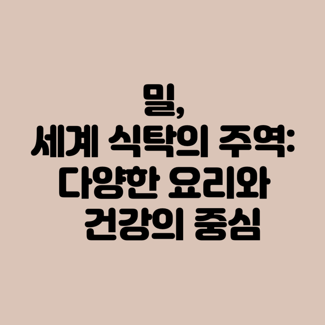 밀은 그 다양한 형태와 건강상의 이점으로 우리 식단의 중요한 부분을 차지합니다. 밀과 함께라면, 매일의 식사가 더욱 건강하고 맛있어집니다. 지금 바로 밀을 활용한 요리에 도전하여, 그 다양한 맛과 건강상의 이점을 모두 즐겨보세요!