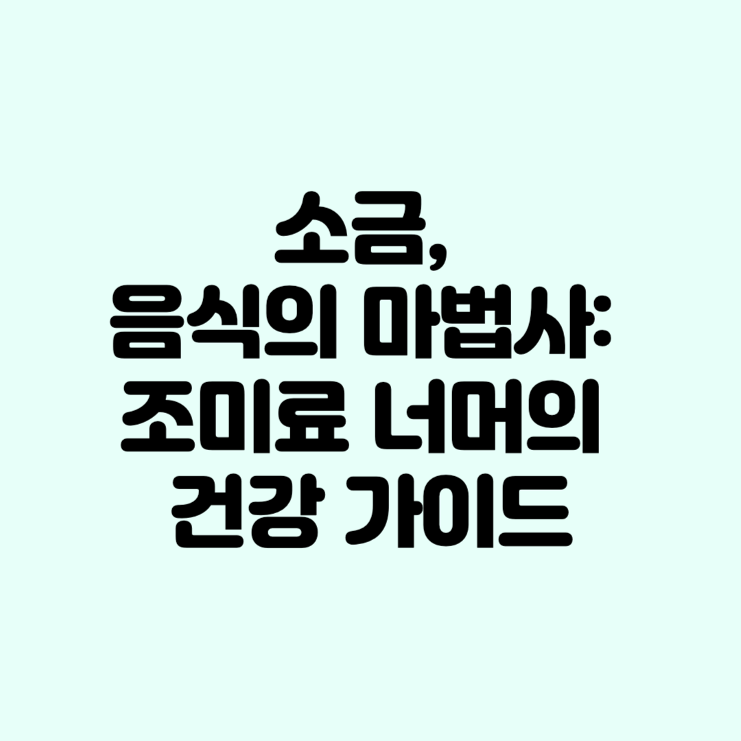 소금은 우리 식단에서 빼놓을 수 없는 중요한 요소이지만, 그 섭취량을 적절히 관리하는 것이 중요합니다. 소금과 함께라면, 음식의 맛은 물론 건강도 지킬 수 있습니다. 지금부터 소금을 올바르게 사용하여, 건강하고 균형 잡힌 식생활을 실천해보세요!