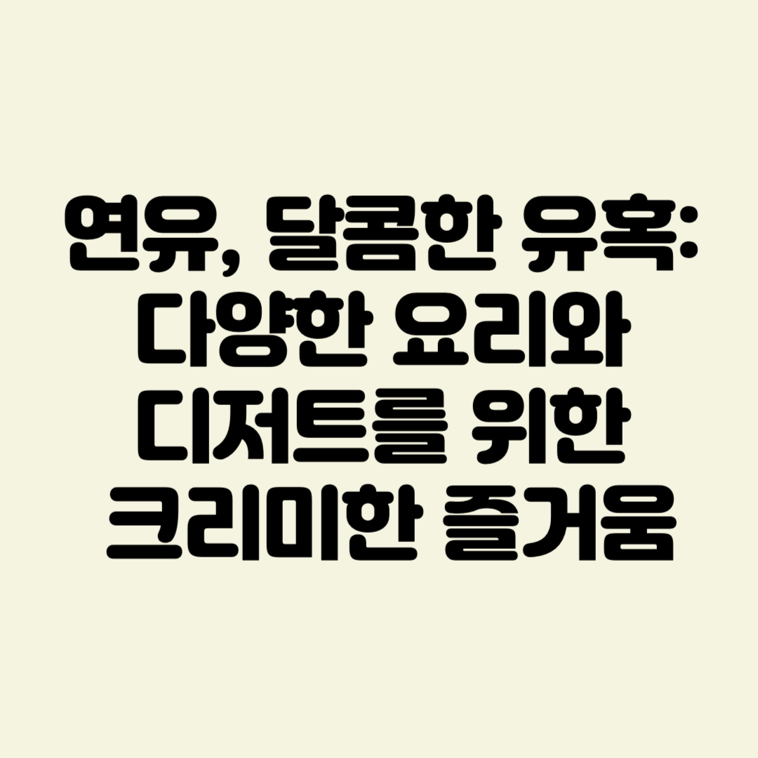 연유는 그 달콤하고 크리미한 맛과 다양한 활용법으로 매일의 식단에 즐거움을 더해줍니다. 연유와 함께라면, 매일의 식사가 더욱 풍부하고 달콤해집니다. 지금 바로 연유를 활용한 요리에 도전하여, 그 다양한 맛과 건강상의 이점을 모두 즐겨보세요!
