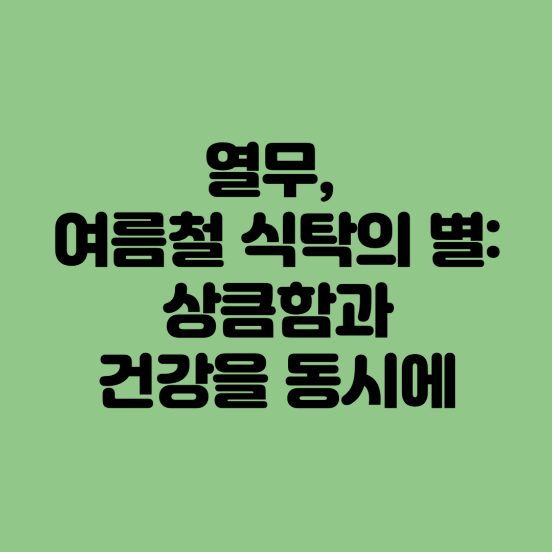 열무는 그 풍부한 영양과 상큼한 맛으로 여름철 식단에 완벽한 추가입니다. 열무와 함께라면, 매일의 식사가 더욱 건강하고 즐거워집니다. 지금 바로 열무를 활용한 요리에 도전하여, 그 다양한 맛과 건강상의 이점을 모두 즐겨보세요!