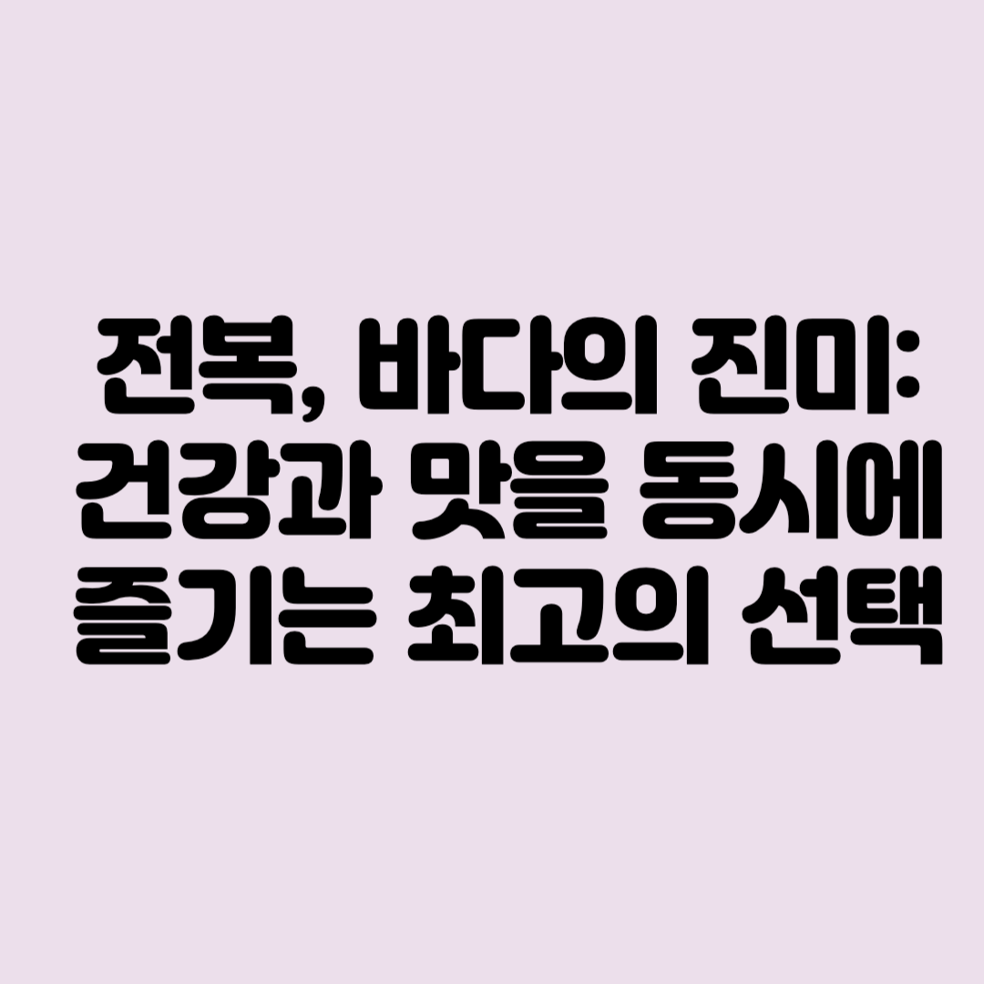 전복은 그 다양한 영양소와 건강상의 이점으로 매일의 식단에 훌륭한 추가가 됩니다. 전복과 함께라면, 매일의 식사가 더욱 건강하고 맛있어집니다. 지금 바로 전복을 활용한 요리에 도전하여, 그 다양한 맛과 건강상의 이점을 모두 즐겨보세요!