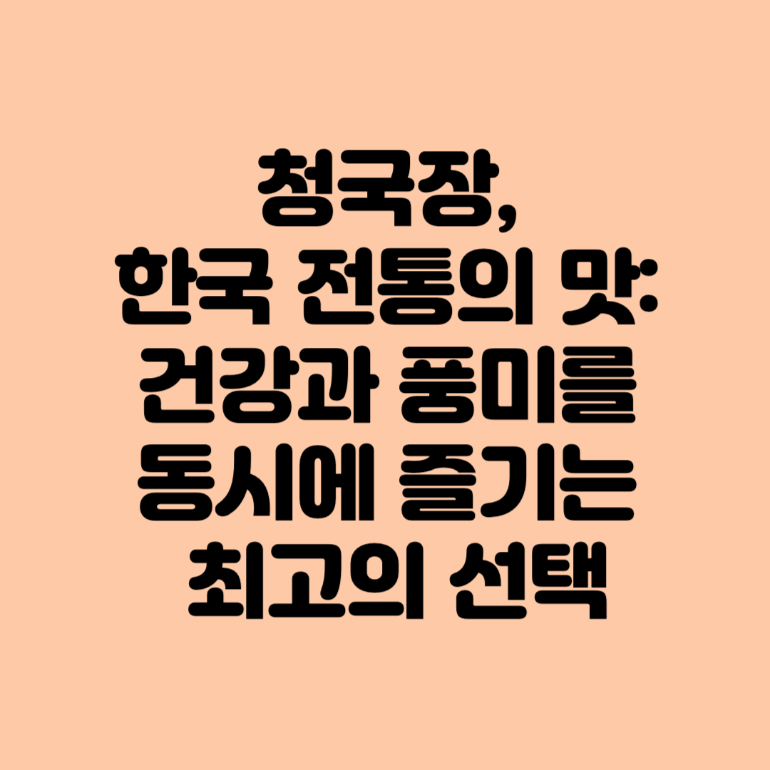 청국장은 그 다양한 영양소와 건강상의 이점으로 매일의 식단에 훌륭한 추가가 됩니다. 청국장과 함께라면, 매일의 식사가 더욱 건강하고 맛있어집니다. 지금 바로 청국장을 활용한 요리에 도전하여, 그 다양한 맛과 건강상의 이점을 모두 즐겨보세요!