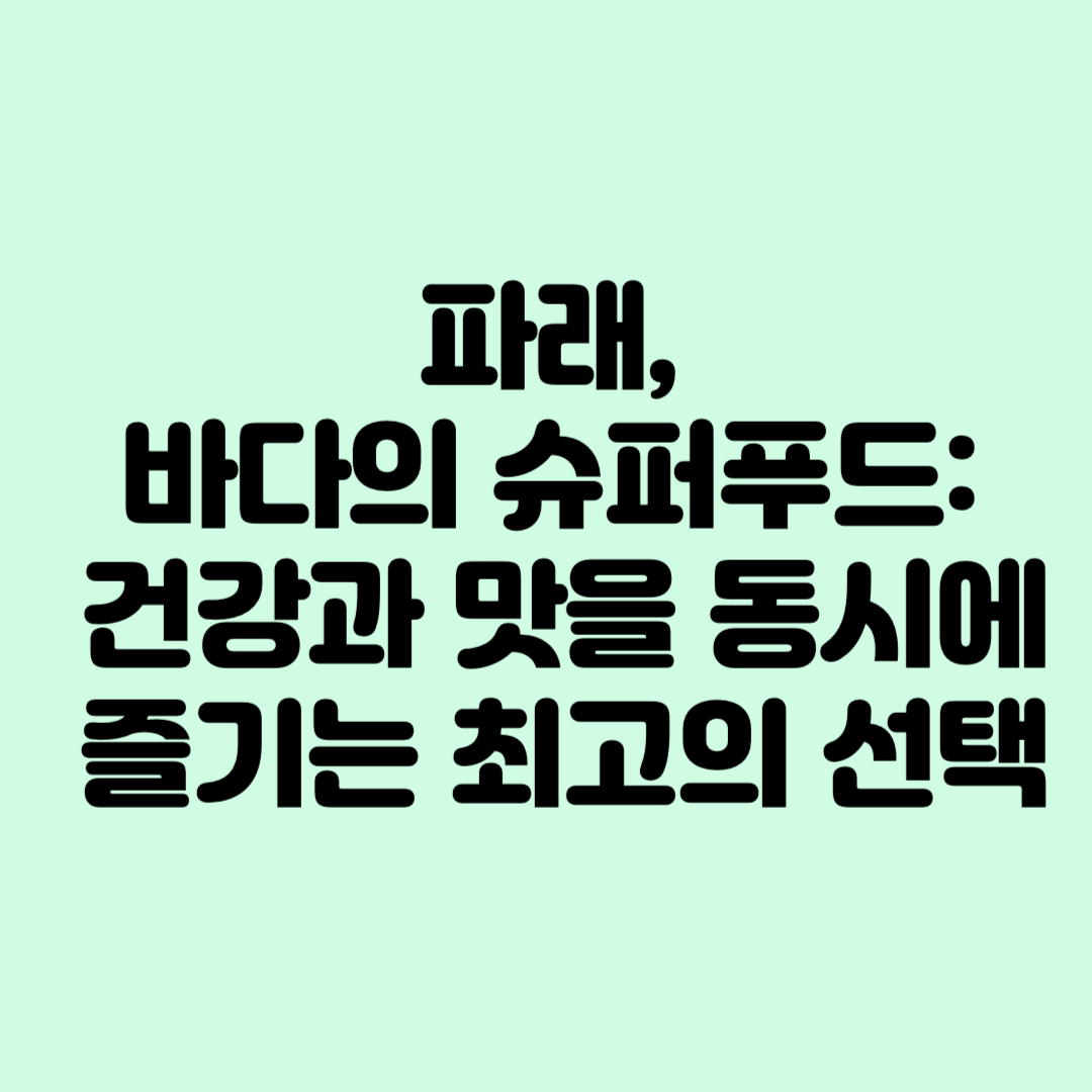 파래는 그 다양한 영양소와 건강상의 이점으로 매일의 식단에 훌륭한 추가가 됩니다. 파래와 함께라면, 매일의 식사가 더욱 건강하고 맛있어집니다. 지금 바로 파래를 활용한 요리에 도전하여, 그 다양한 맛과 건강상의 이점을 모두 즐겨보세요!