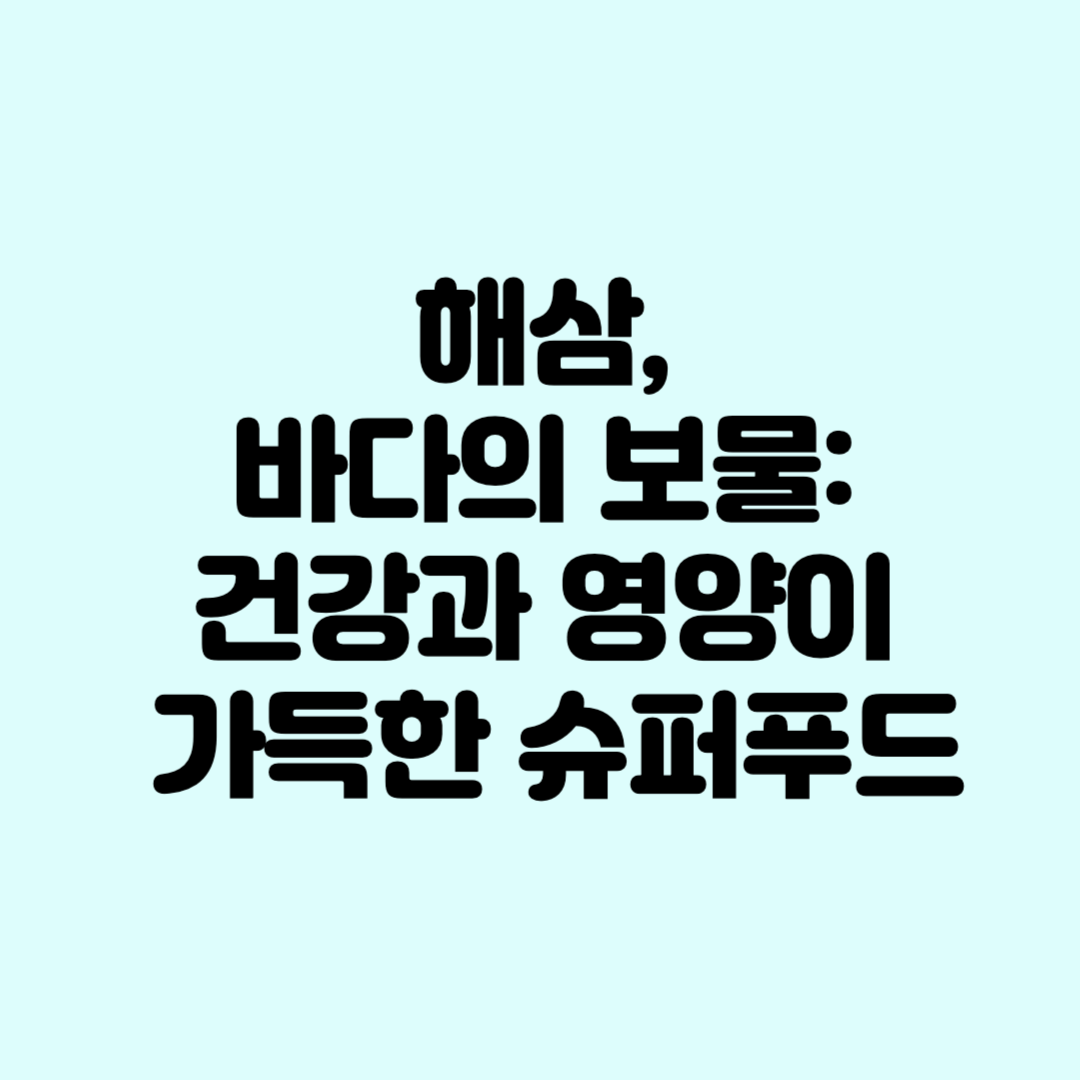 해삼은 그 다양한 영양소와 건강상의 이점으로 매일의 식단에 훌륭한 추가가 됩니다. 해삼과 함께라면, 매일의 식사가 더욱 건강하고 맛있어집니다. 지금 바로 해삼을 활용한 요리에 도전하여, 그 다양한 맛과 건강상의 이점을 모두 즐겨보세요!
