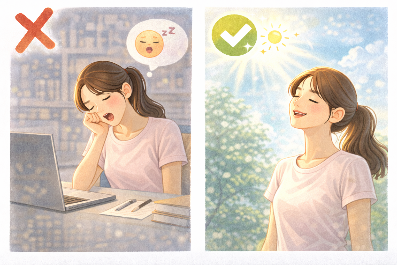 내일 아침, 커튼을 열고 햇살을 맞이해보세요. 점심에 10분만 밖에서 걸어보세요. 그 작은 습관이 몸과 마음을 바꿉니다.